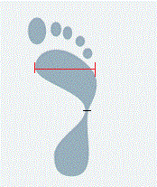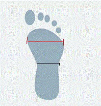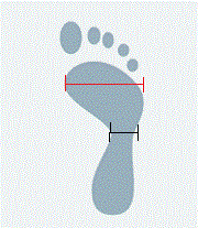 A medida em preto representa o istmo do pé(o meio do pé) e ele deve ser pelo menos(aproximadamente) 1/3 da medida em vermelho(a frente do pé).Esse seria o pé NORMAL.